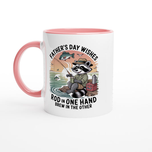 Father's Day Fishing and Coffee Ceramic Mug with Colorful Rim