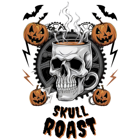 Skull Roast Coffee T-Shirt – Halloween Theme Design, Cotton Unisex Casual Wear Tee