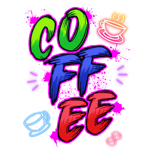 Vintage Neon Coffee T-Shirt – Colorful Paint Splatter Design