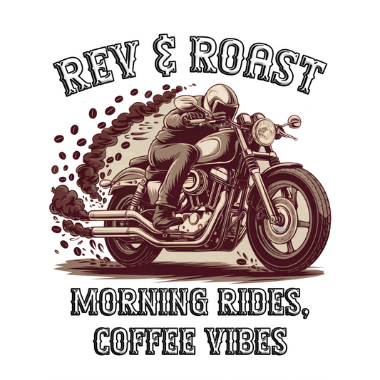 Rev & Roast Motorcycle and Coffee T-Shirt – Cafe Racer Design, Unisex Casual Wear Tee