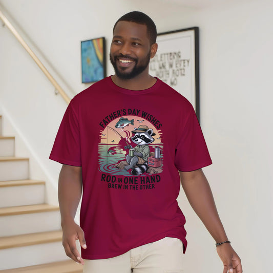 Father's Day Wishes T-Shirt – Coffee and Fishing Theme Design, Cotton Unisex Casual Wear Tee
